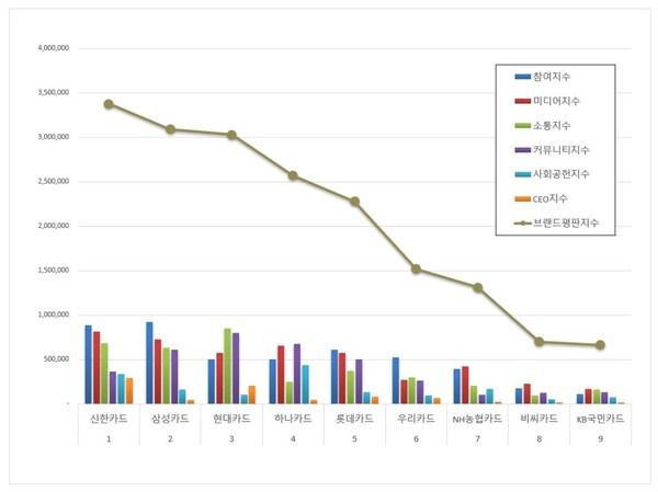 각 카드사마다 다양한 서비스와 혜택을 제공하고 있으며, 특히 신한카드와 삼성카드는 브랜드 평판 지수에서 높은 점수를 기록하고 있습니다.